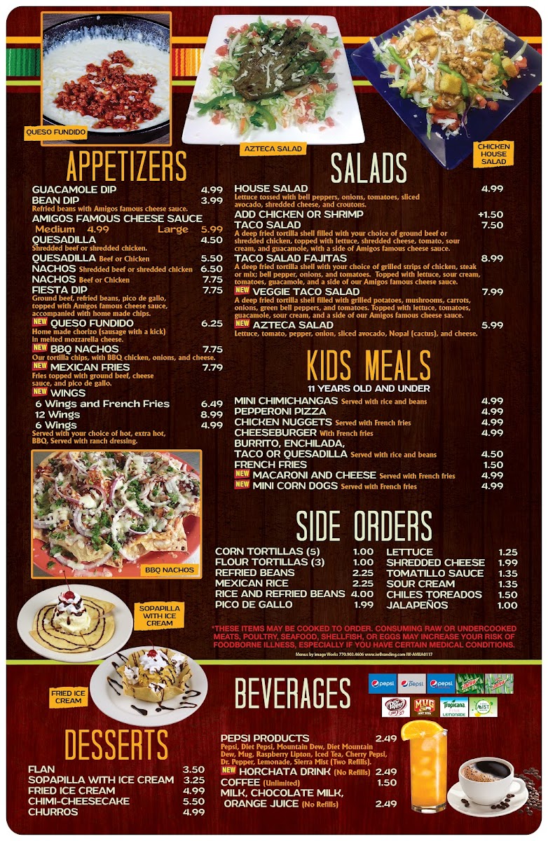 Welcome to Amigos Mexican Cuisine and Cantina, a vibrant dining experience nestled at 1415 E San Marnan Dr in Waterloo, IA. Here, the menu is a celebration of traditional Mexican flavors with a contemporary twist. Indulge in their Build Your Own Combination option, offering two or three delectable items served alongside fragrant Mexican rice and beans, allowing for a personalized feast starting at just $11.80.