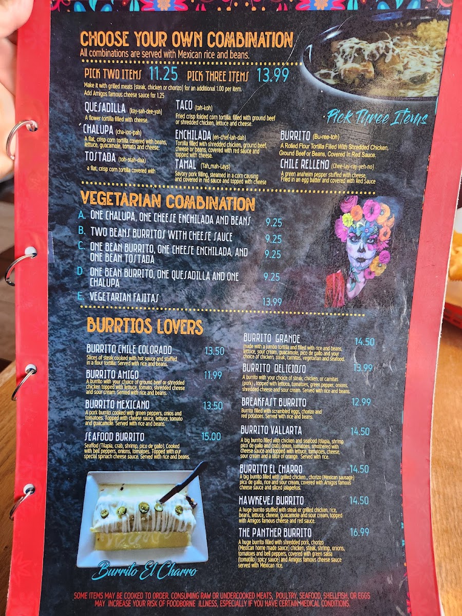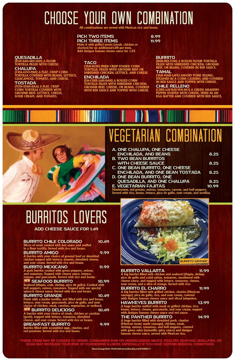 For those with a sweet tooth, don’t miss the ChimiCheesecake, a decadent dessert that’s sure to leave you wanting more. The atmosphere is lively, complemented by friendly service that truly listens to your needs. Regulars rave about must-try dishes like the Volcan and the Panther Burrito, both brimming with flavor. Whether you’re a local or just passing through, Amigos promises a delightful culinary journey that captures the heart of Mexican cuisine.
